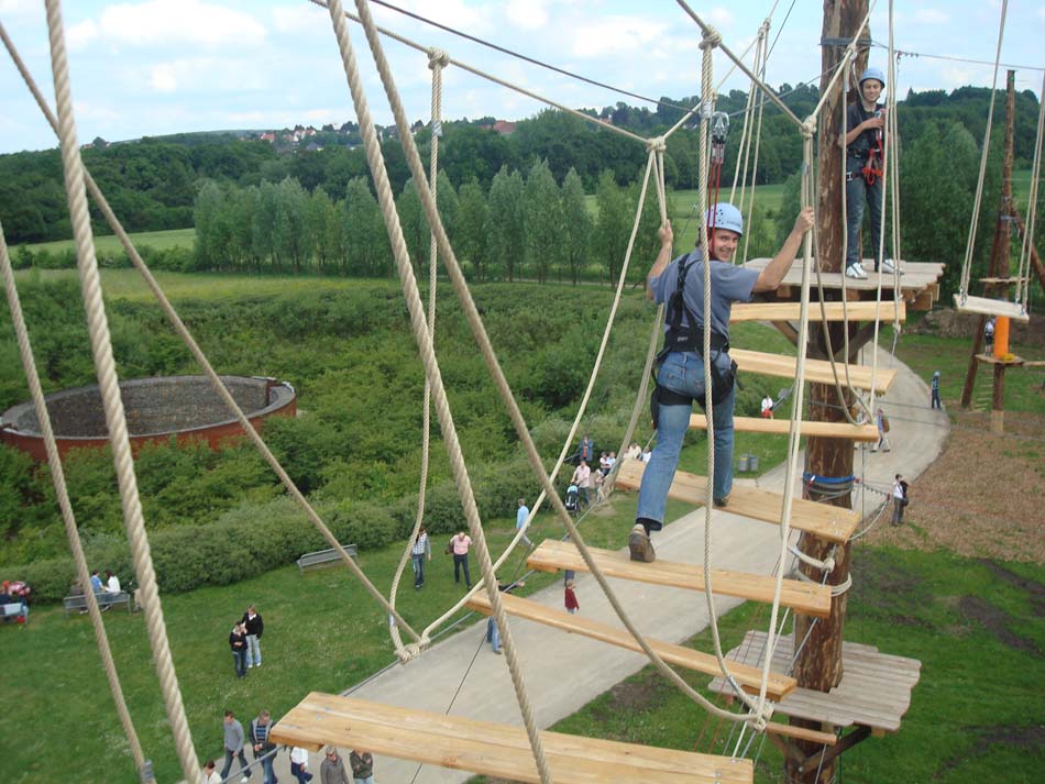 Auf insgesamt 11 verschiedenen Parcours ist für Ihre individuelle Challenge garantiert etwas dabei. Zusätzlich bieten wir Ihnen und Ihrem Team die Möglichkeit der nachhaltigen Teamentwicklung. Die Kombination aus gemeinsamen Kooperationsaufgaben und dem teamorientierten Klettern und Sichern schafft Vertrauen und Offenheit in Ihrem Team. So kann ein beständiges Wir-Gefühl entstehen.