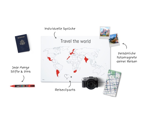 Persönlicher Titel, persönliches Zitat, in deiner Lieblingsschriftart und Farbe. Die Leinwand auf Keilrahmen gibt es mit verschiedenen Weltkartedesigns. Male deine bereisten Länder aus oder pinne diese und hänge deine schönsten Reisefotos dazu. Inspiration findest du auf unserer Homepage www.meine-weltkarte.de