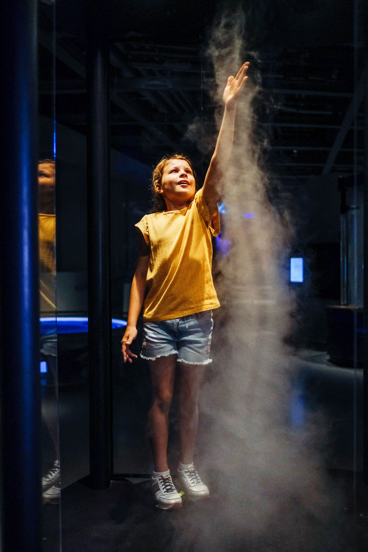 Im Mittelpunkt der gesamten Ausstellung steht das selbstständige Ausprobieren von interaktiven Exponaten, für Kinder, Jugendliche und Erwachsene.