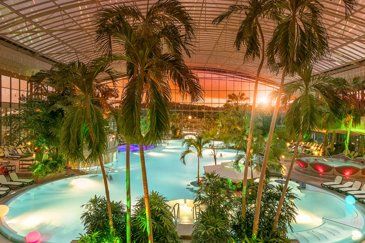Das Thermalwasser der THERME ist als Heilwasser staatlich anerkannt. Wassertemperaturen zwischen 34°C und 38°C machen ein Bad zur wahren Entspannungsoase. In den mit Sole, Schwefel, Jod-Selen und Calcium-Lithium angereicherten Vitalbecken können die Gäste ‚in Gesundheit baden‘. Im weltweit einzigartigen Vital-Parcours mit drei perfekt aufeinander abgestimmten Gesundheitsbädern unterstützen das Zink-Basenbad, die Vitaminquelle und das Mineralienbad dabei, den Körper vom täglichen Stress zu befreien, zu regenerieren und zu pflegen. Wer sich dagegen lieber auspowert, für den ist die beliebte Wassergymnastik genau richtig. Auch die Schönheit profitiert von einem Besuch der THERME. Kostenlose Beautyprogramme wie pflegende Gesichtsmasken und Salzpeelings bringen die Haut zum Strahlen. Im Anschluss laden unzählige bequeme Liegen unter Palmen zum Träumen und Verweilen ein.